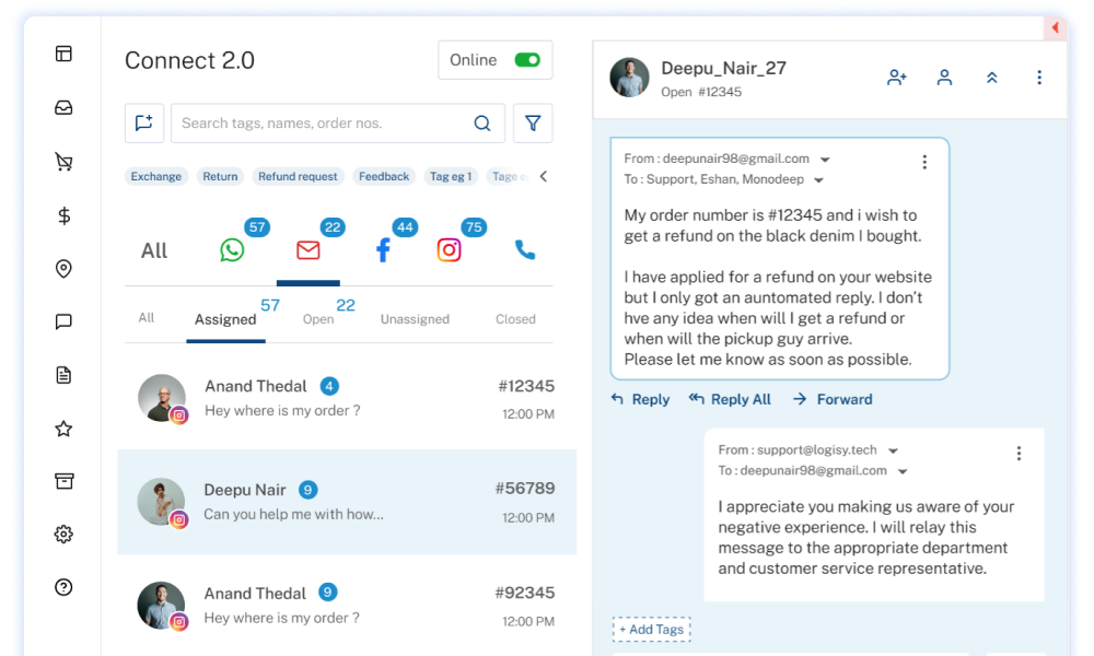 Create unlimited chatbots across WhatsApp, Messenger and Instagram for all possible scenarios like Order status, Payment issues, Returns etc